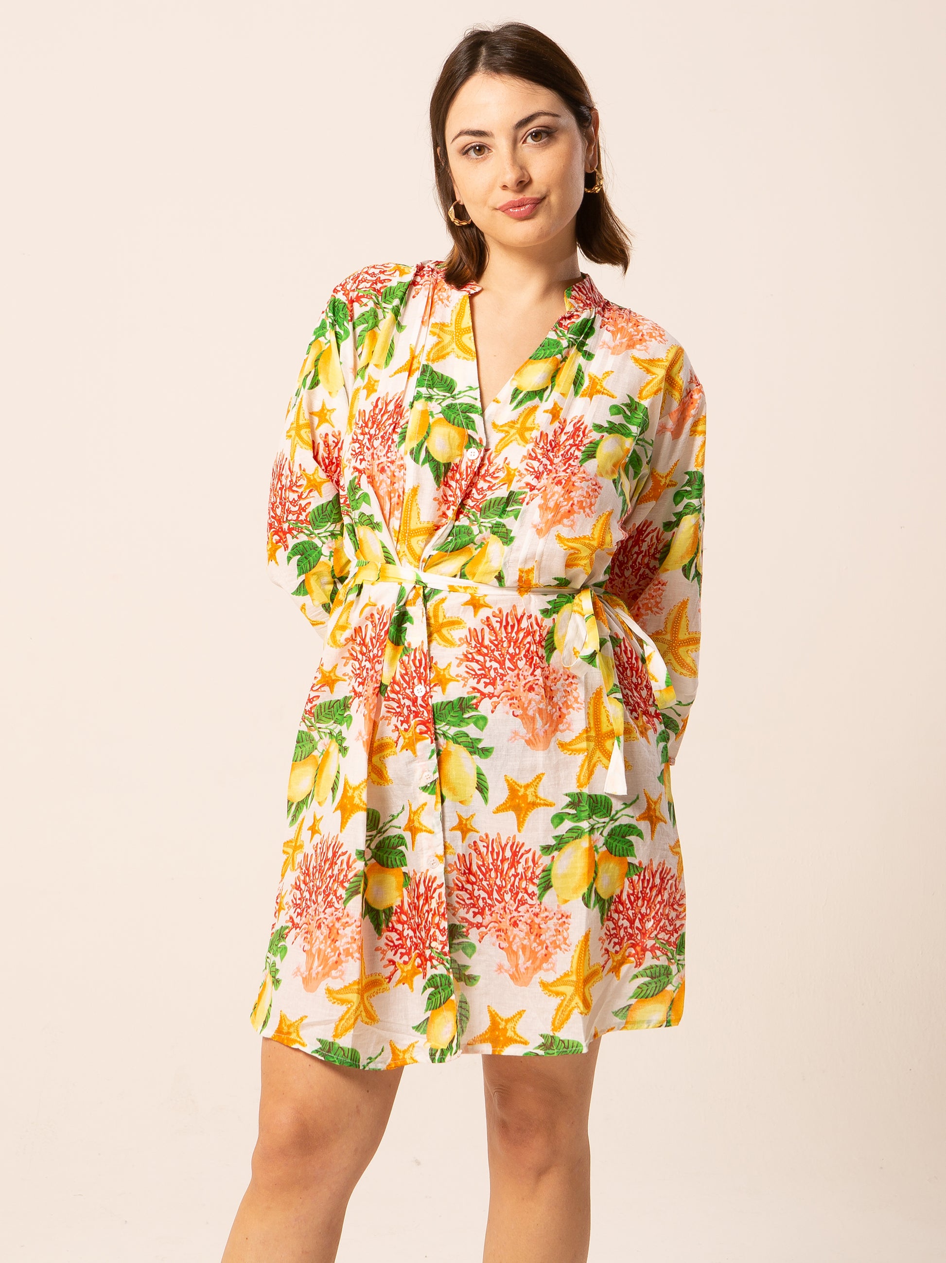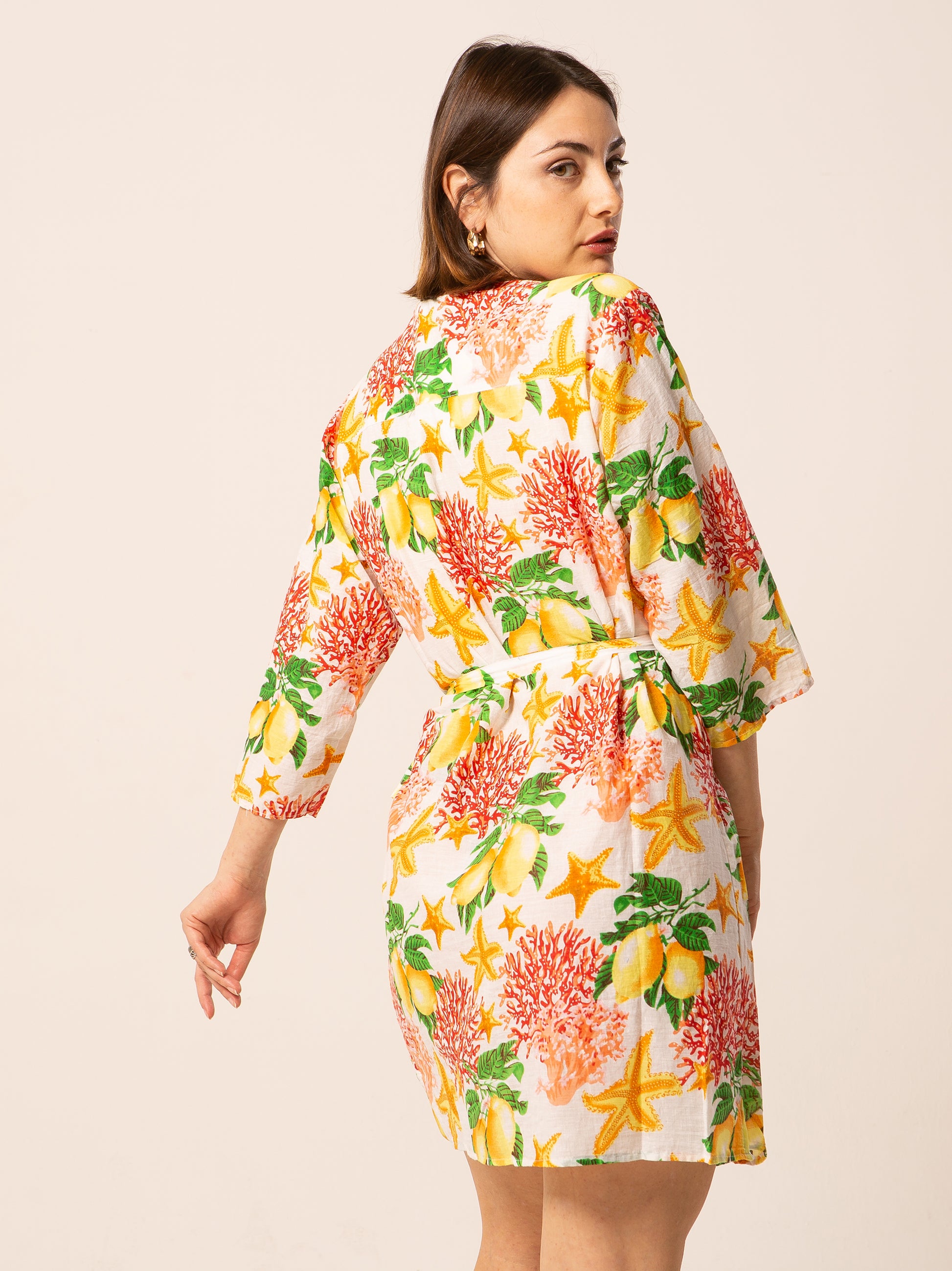 Questo abito rappresenta una scelta perfetta per quante amano vestire con colori e fantasie particolari. Può essere portato con scarpe basse, per un look più informale, oppure con sandali alti per aggiungere un tocco di eleganza