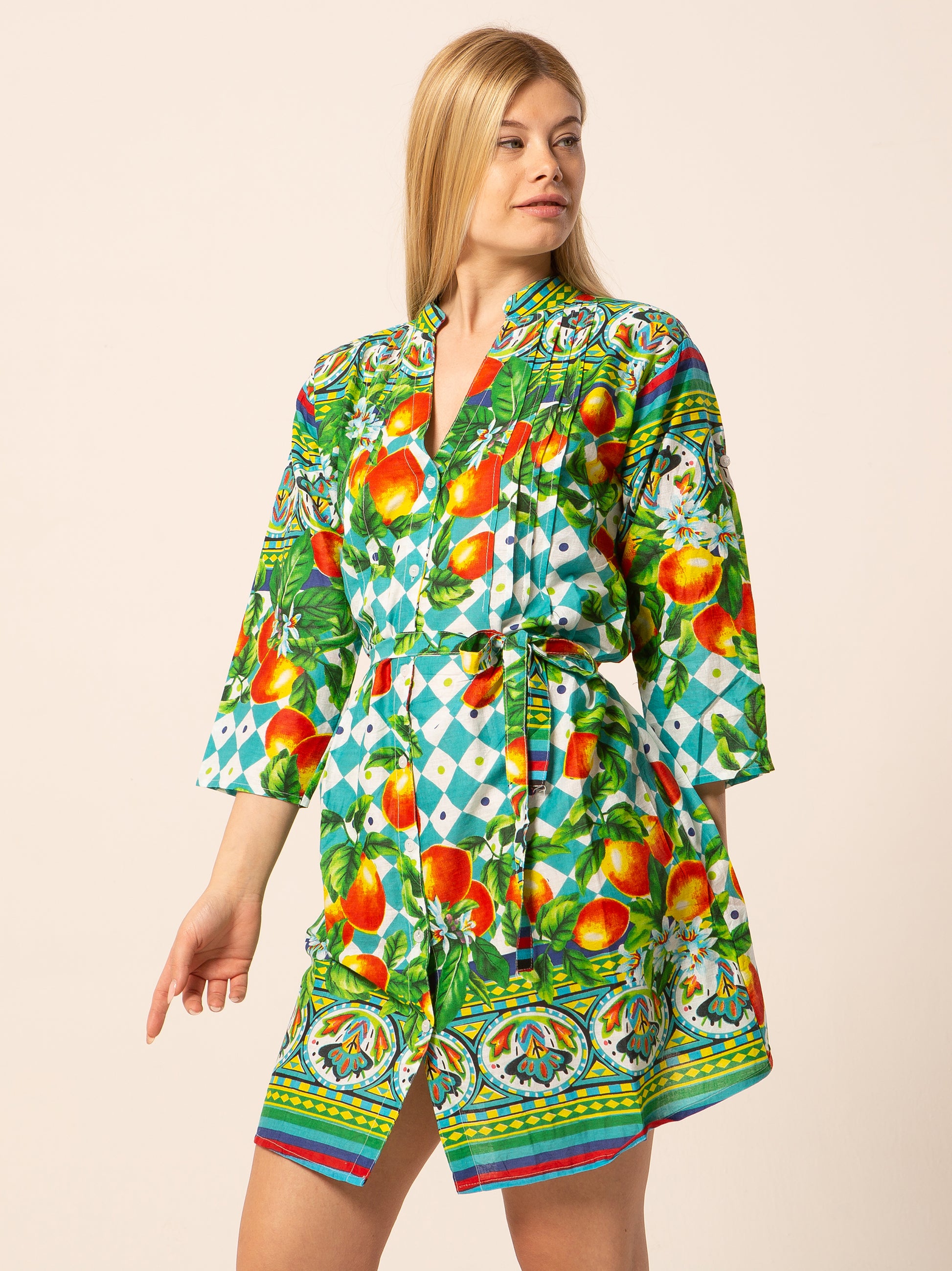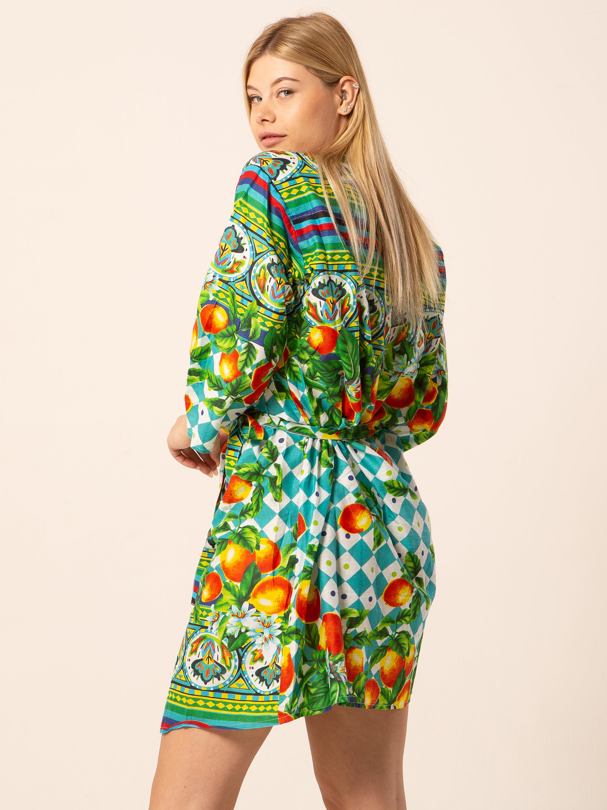 Questo abito rappresenta una scelta perfetta per quante amano vestire con colori e fantasie particolari. Può essere portato con scarpe basse, per un look più informale, oppure con sandali alti per aggiungere un tocco di eleganza