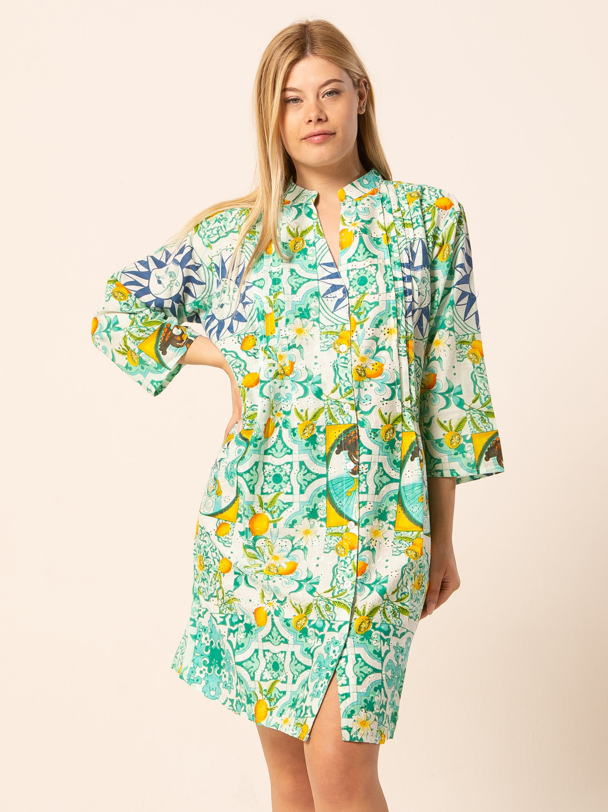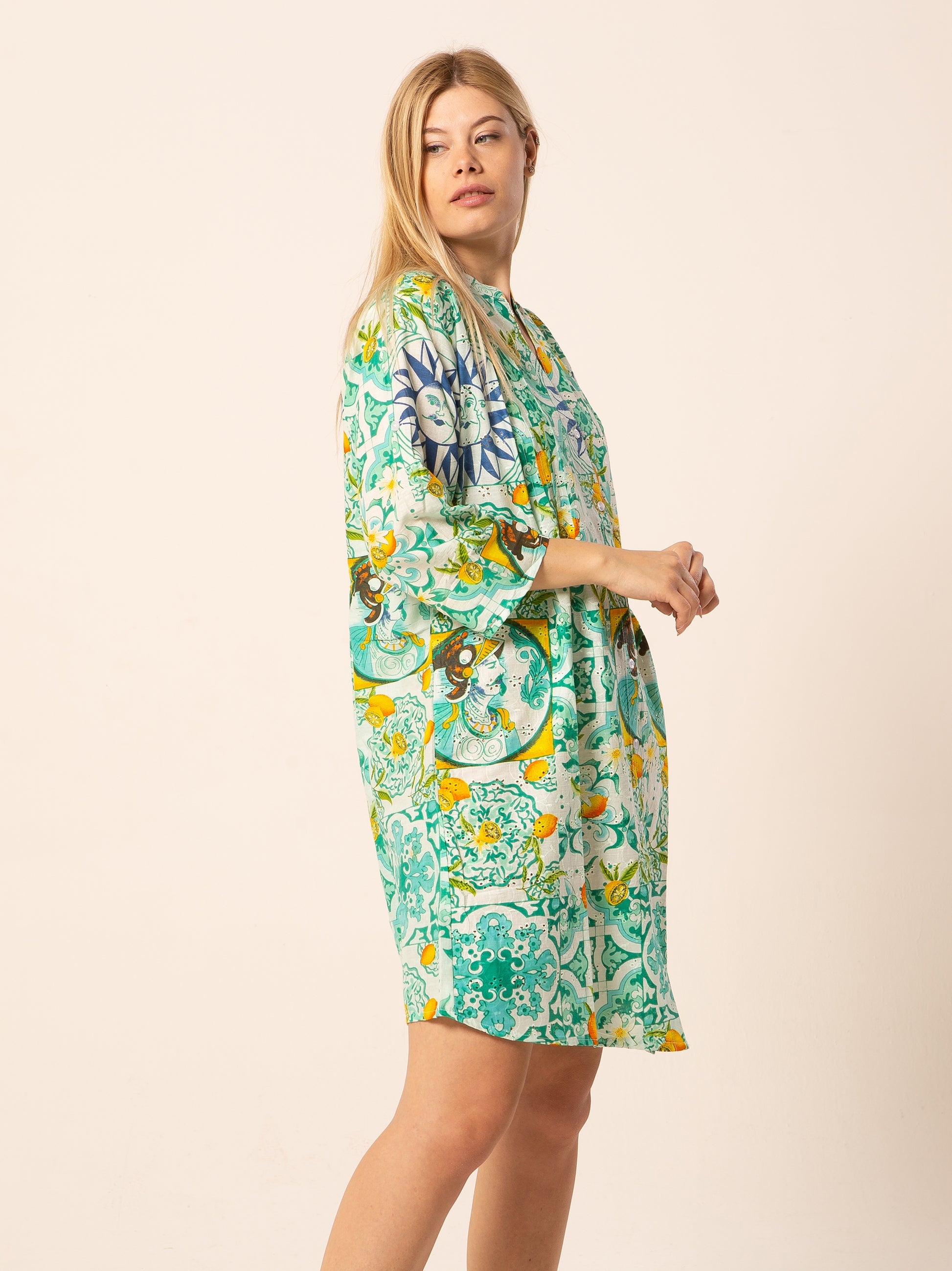 Questo abito rappresenta una scelta perfetta per quante amano vestire con colori e fantasie particolari. Può essere portato con scarpe basse, per un look più informale, oppure con sandali alti per aggiungere un tocco di eleganza
