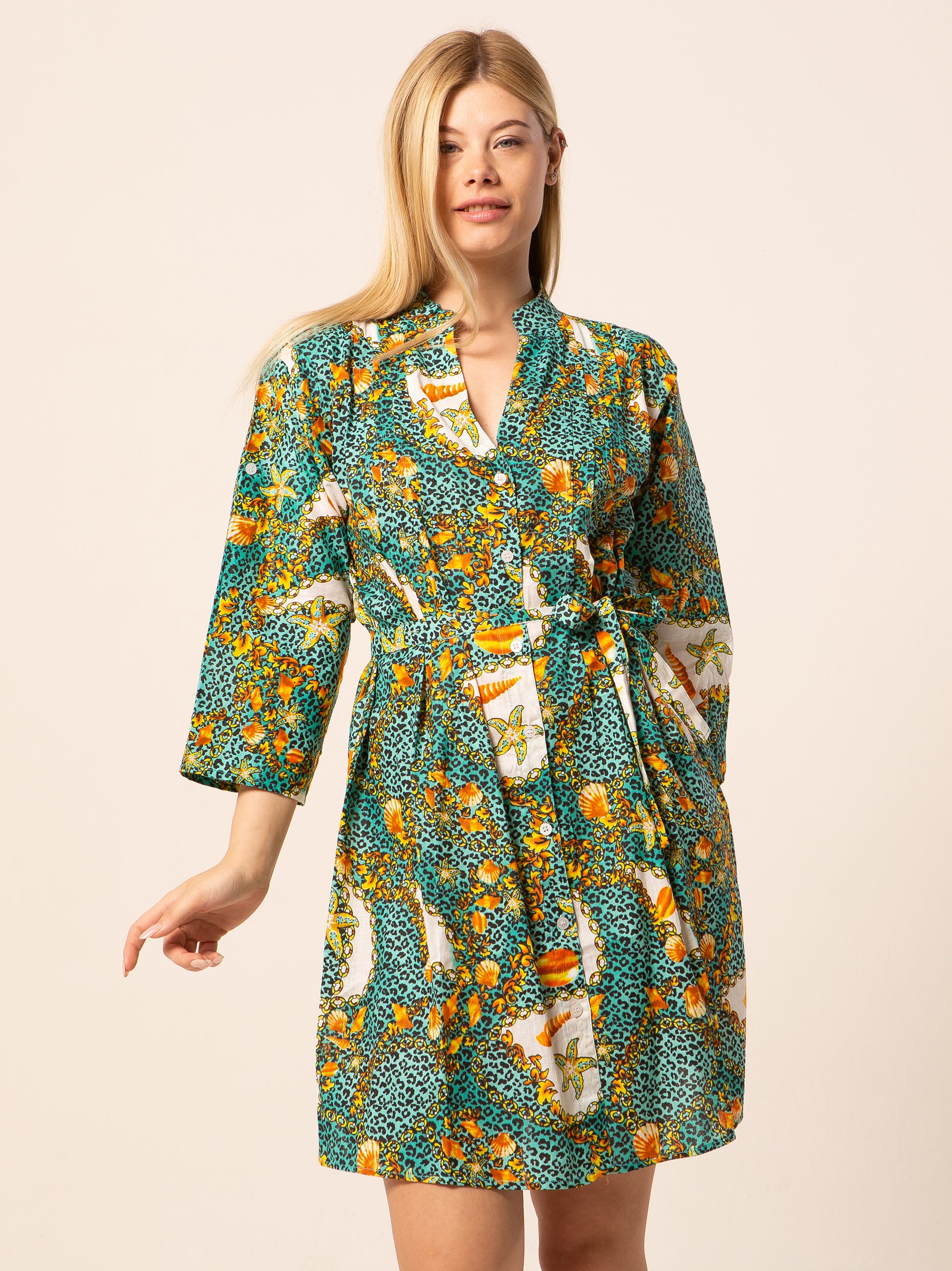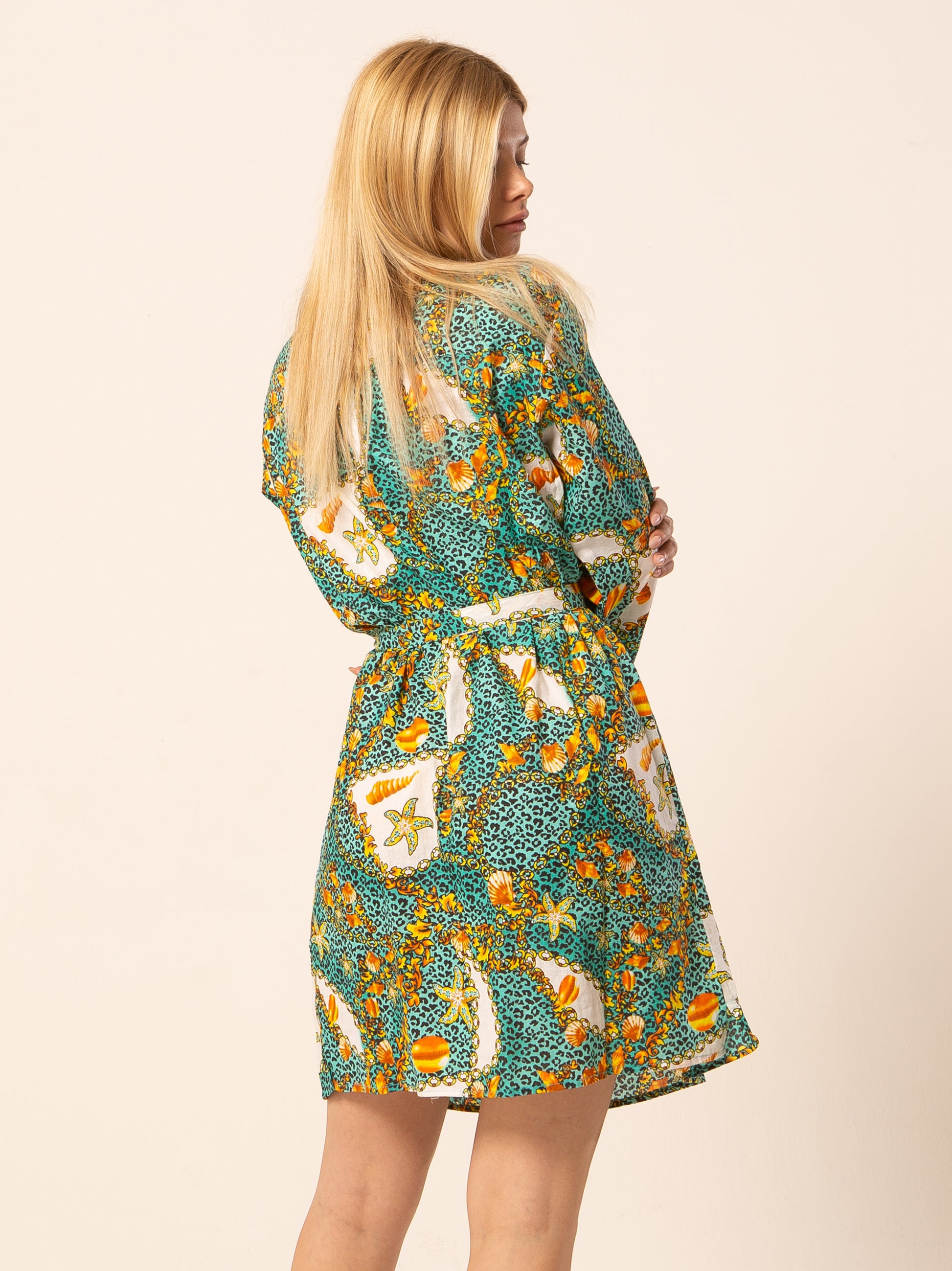 Questo abito rappresenta una scelta perfetta per quante amano vestire con colori e fantasie particolari. Può essere portato con scarpe basse, per un look più informale, oppure con sandali alti per aggiungere un tocco di eleganza